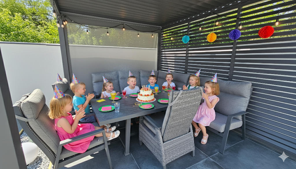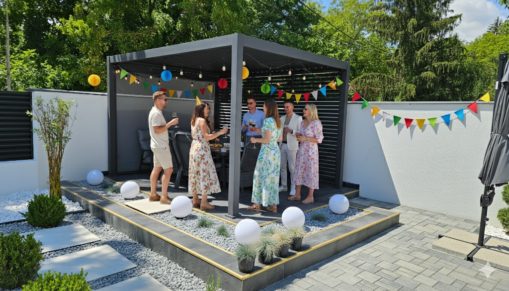 Foișor spațios – un foișor amenajat în curte, perfect pentru a servi masa în aer liber sau pentru momente de relaxare ferite de soare ori ploaie.