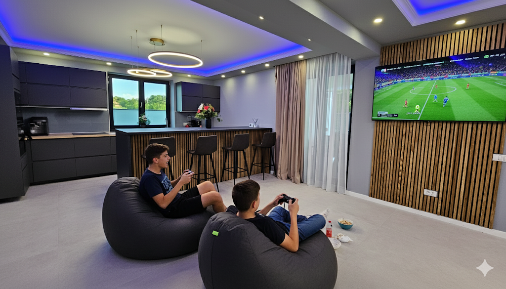 Spații interioare primitoare – living generos de tip open-space, bucătărie complet utilată, dormitoare confortabile și băi moderne, toate amenajate cu grijă pentru a vă asigura confortul pe durata șederii.