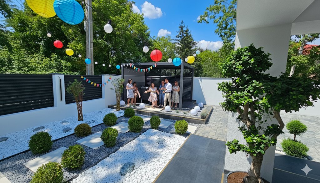 Zonă de grătar – dispunem de un grătar modern, ideal pentru a prepara bucate delicioase și a crea momente de neuitat alături de familie și prieteni.